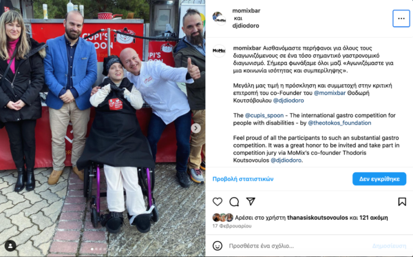 “Το MoMix bar φιλοξενεί το νικητή στην κατηγορία cocktail Νίκο Κυτίδη του γαστρονομικού διαγωνισμού «Cupi’s spoon 2024» που αφορά άτομα με διανοητικές και αναπτυξιακές δυσκολίες.
