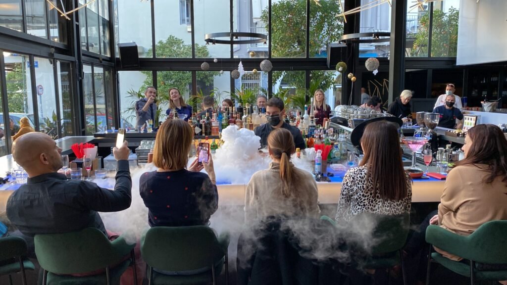 - Ομαδικές προκλήσεις δημιουργίας κοκτέιλ και γευστικές δοκιμές